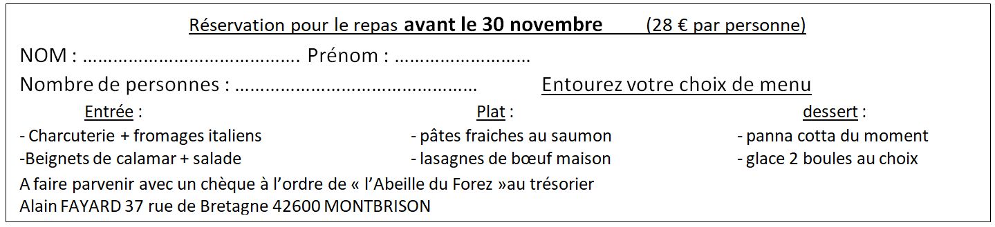 Réservation du repas de l’assemblée générale à envoyer avant le 30 novembre |